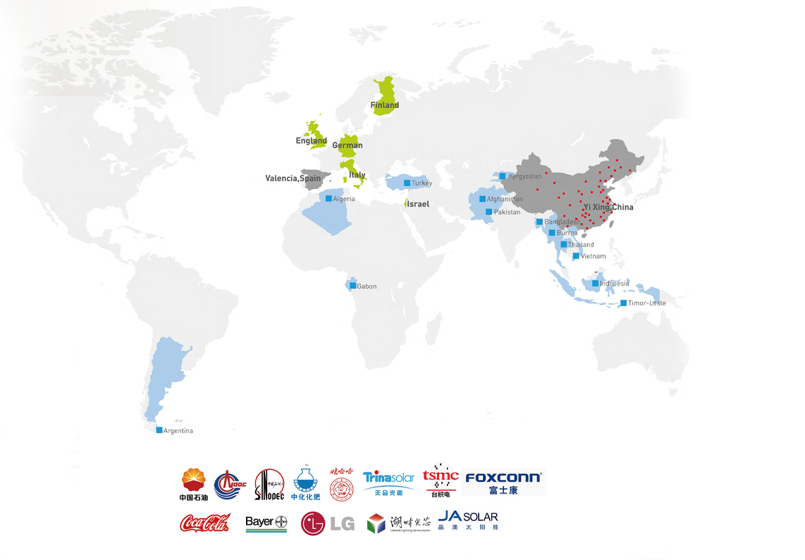 江華集團(tuán)業(yè)務(wù)涉及石油化工、重工業(yè)、冶金礦業(yè)、電力、制藥、新能源等各行業(yè),業(yè)務(wù)遍及全國各大城市,并已承接了20多個(gè)海外環(huán)保治理項(xiàng)目,遍及孟加拉、土耳其、俄羅斯緬甸等國,同時(shí)開發(fā)了越南、印度、泰國、斯里蘭卡等國際環(huán)保市場,長期與美國、法國芬蘭、瑞典、德國、日本、韓國、以色列等國外知名環(huán)保公司保持緊密合作關(guān)系。